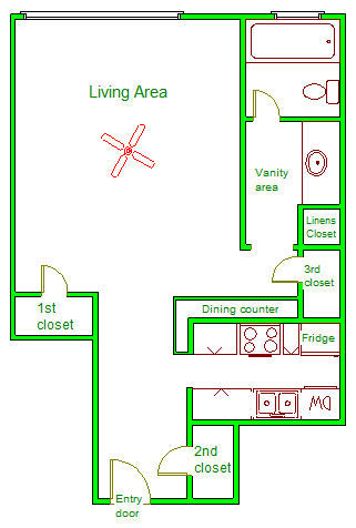 Deluxe Single/Studio Apt with 3 closets, full kitchen & Bath in great location
