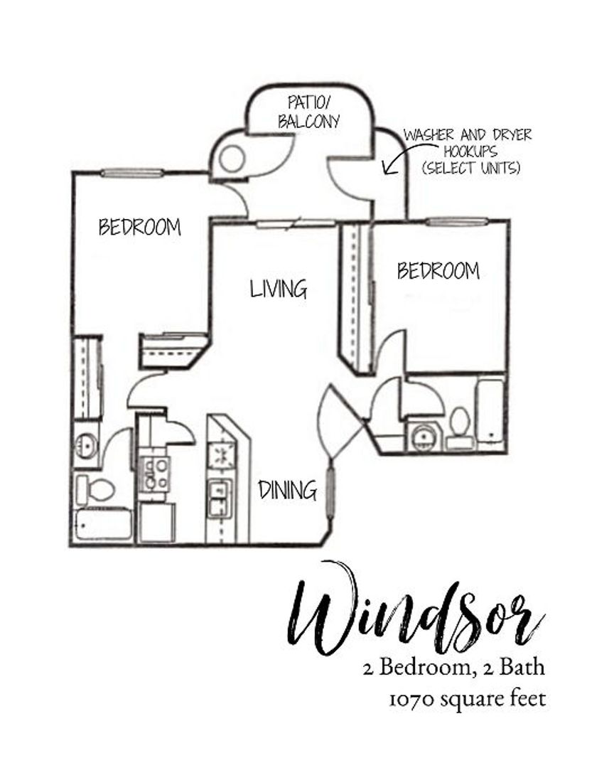 Upgraded Spacious Deluxe 2 Bed + 2 Baths w/Balcony & Vaulted Ceiling (Upper floor) - Windsor Floorplan