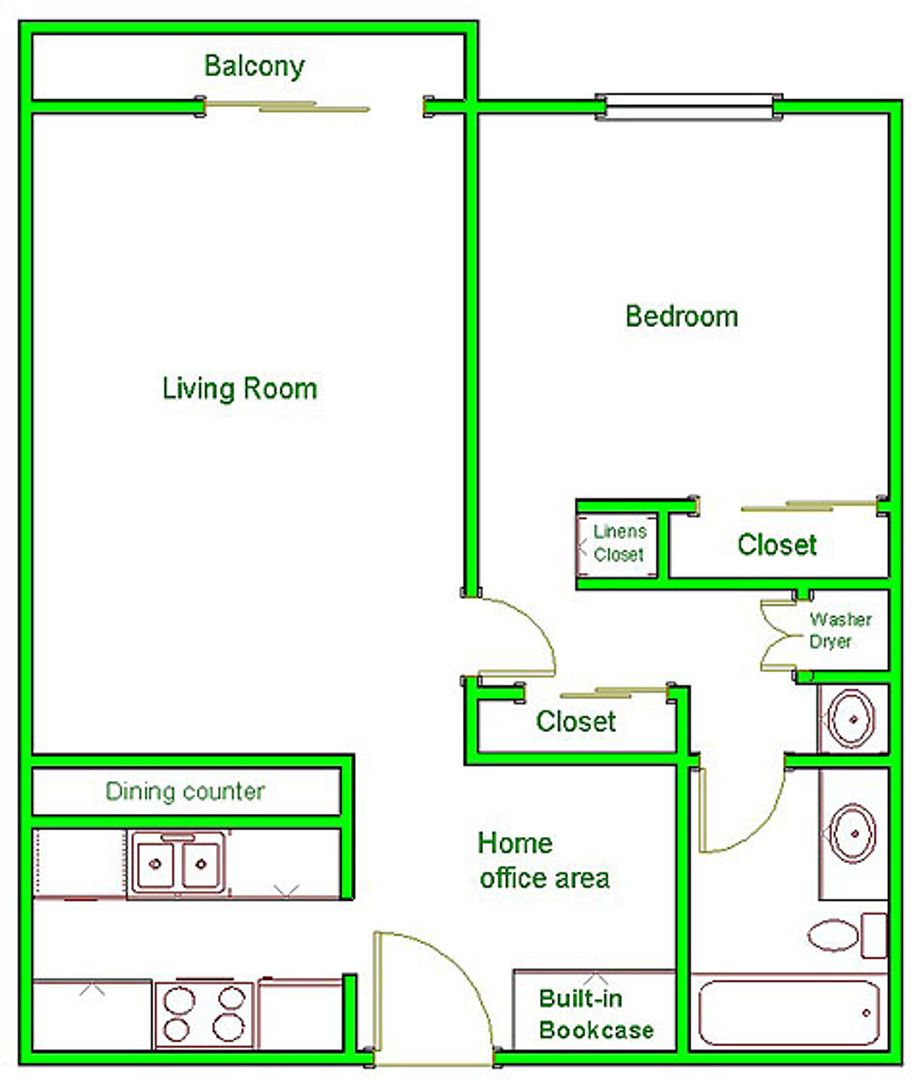 Very Spacious 1 Br apt has Washer/Dryer, Balcony & Home-office area