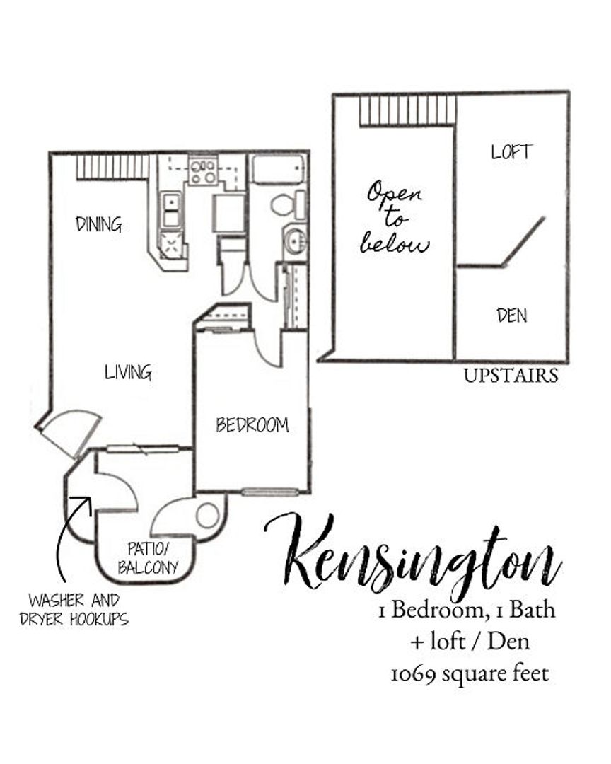 Very Spacious 1 Br + Loft + Den w/Balcony (Upper floor) - Kensington floorplan